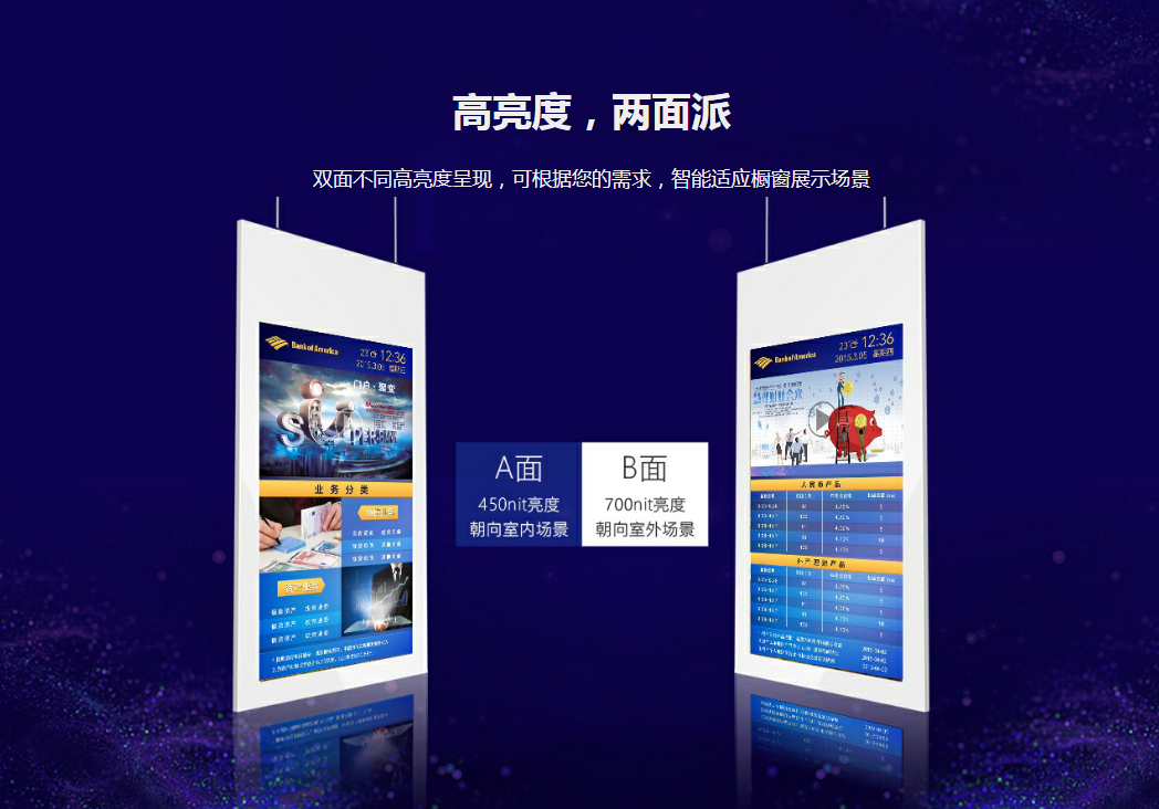 1.双面展示:正如名称所示,这些广告机可以在两个方向上同时展示内容,最大程度地提高曝光率。